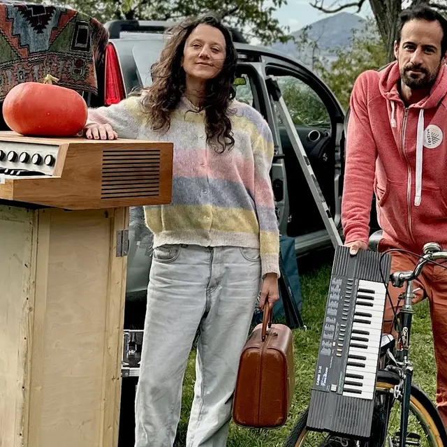 Leïla Martial et Élie Dufour nous ouvrent les portes de leur laboratoire créatif et nous proposent de découvrir leur machine à voyager dans le temps. Un duo oui, mais polyphonique. Du piano voix « traditionnel » aux transes techno-dancefloor, des chansons sur fond d’organetto (orgue portatif médiéval) aux grandes envolées lyriques, de l’orgue d’église aux harmonies tziganes, de Bach à nos jours…